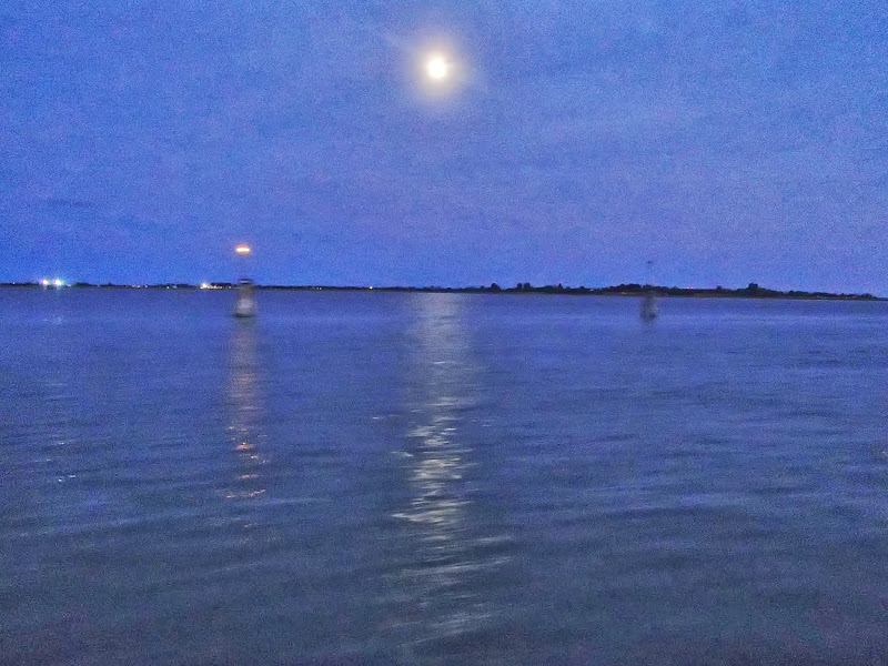Поехали обратно, показываю мальчику лунную дорожку:
