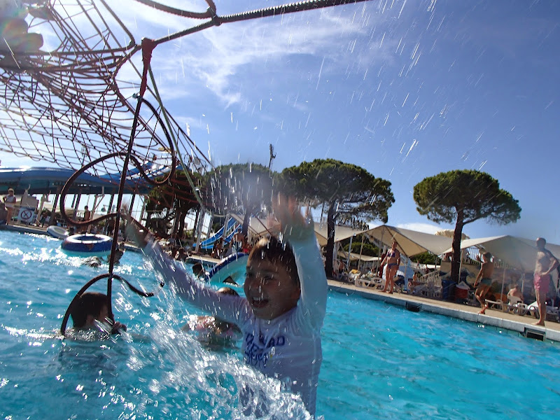 В прошлом году мы облизывались на рекламы закрывшихся буквально перед нашим приездом парков. В этот раз попали в аквапарк (AquaSplash, Натанкин запомнил мой прошлогодний «перевод» — ВодоПлюх).