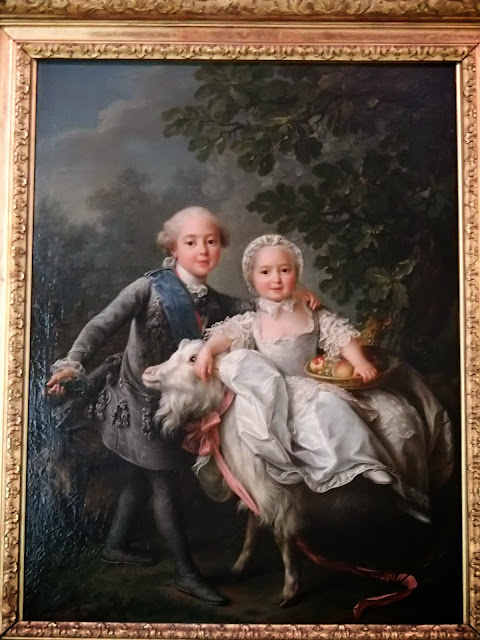 Прекрасный портрет детей. Совершенно неожиданно не пафосный — мальчик станет французским королём, девочка — королевой Сардинии. Мне казалось, таких деток если не на руках у Зевса, то как минимум в повозке с белыми лошадьми рисовали. А тут — верхом на козе :-)
