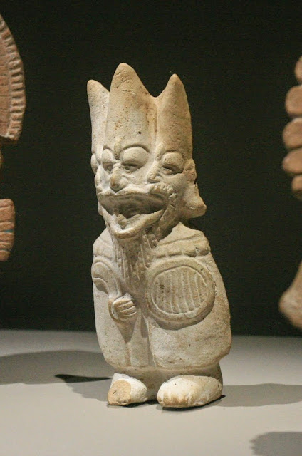 Воин в устрашающей шляпе. Насколько я понимаю, дополнительные глаза и половинки лиц — это части шляпы. А мне эта фигура напомнила тройной портрет кардинала Ришелье из выставки про мушкетёров: